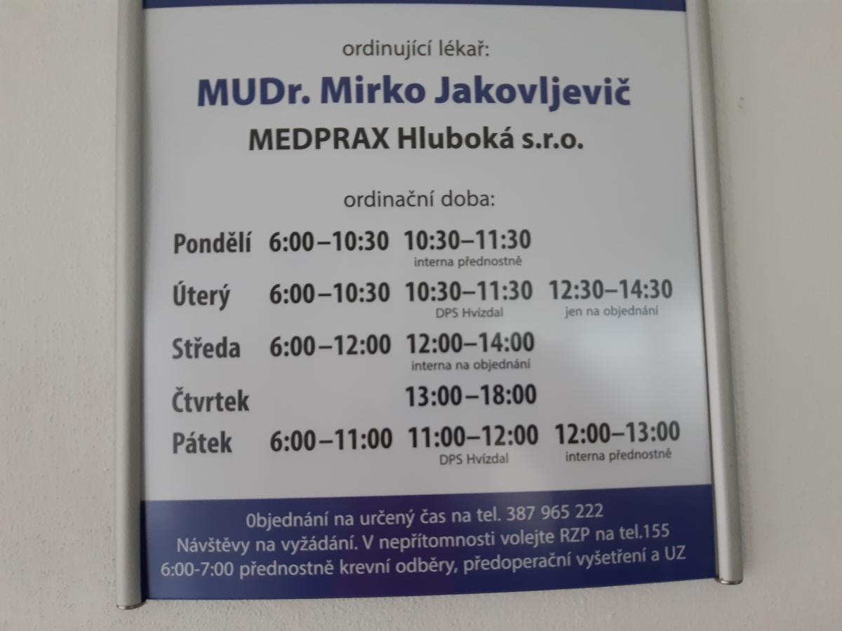 Medprax Hluboká s.r.o. (MUDr. Mirko Jakovljevič)
