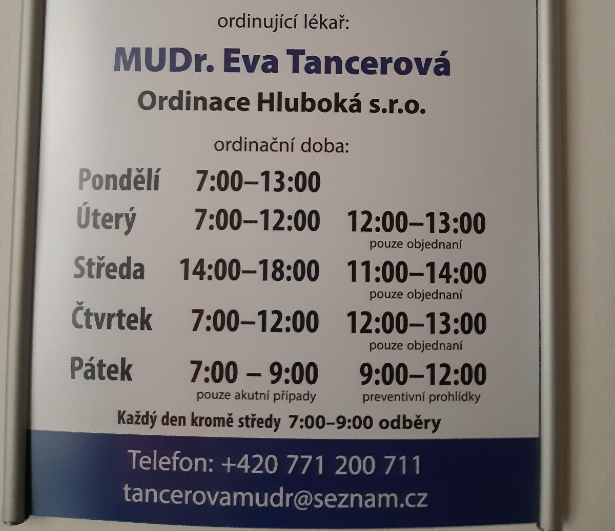 Ordinace Hluboká s.r.o. (MUDr. Eva Tancerová)